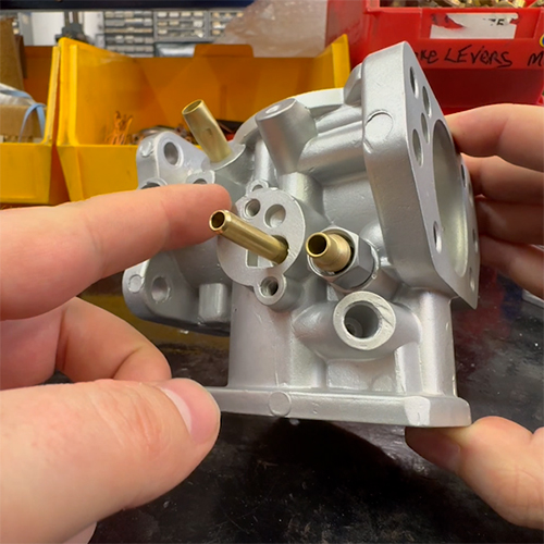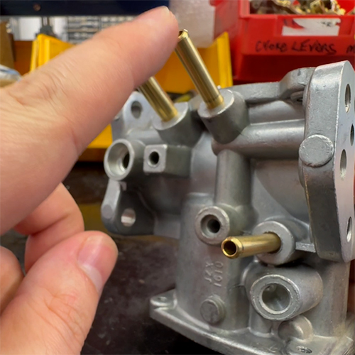 On a later HIF44 carburettor, however, SU changed the position of one of the tubes - so you still have the fuel feed in on the side, but instead of having the overflow next to it, it comes out on an angle to let the float chamber breathe.