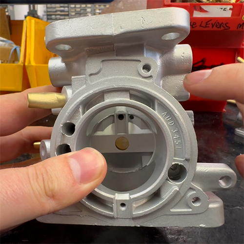 And then when you look top down on the carb, you also have this additional lug where the mixture screw goes down through to act onto the throttle stop.